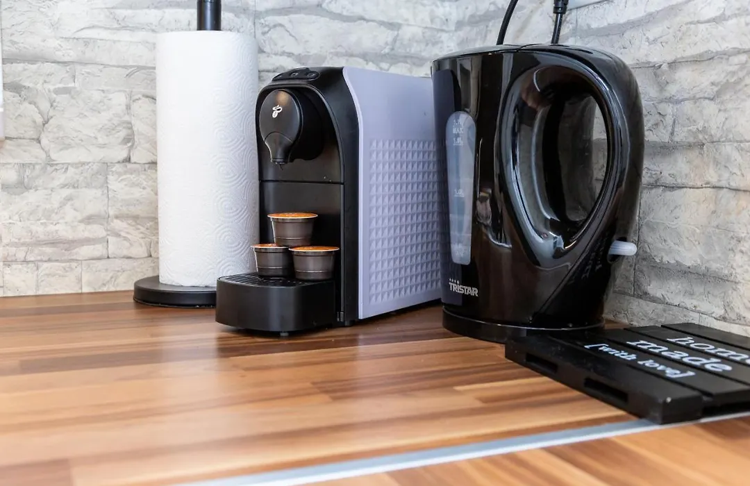 Na miejscu jest pełnowymiarowa kuchnia z urządzeniem do parzenia kawy/herbaty oraz czajnikami elektrycznymi, lodówką i przyborami kuchennymi.